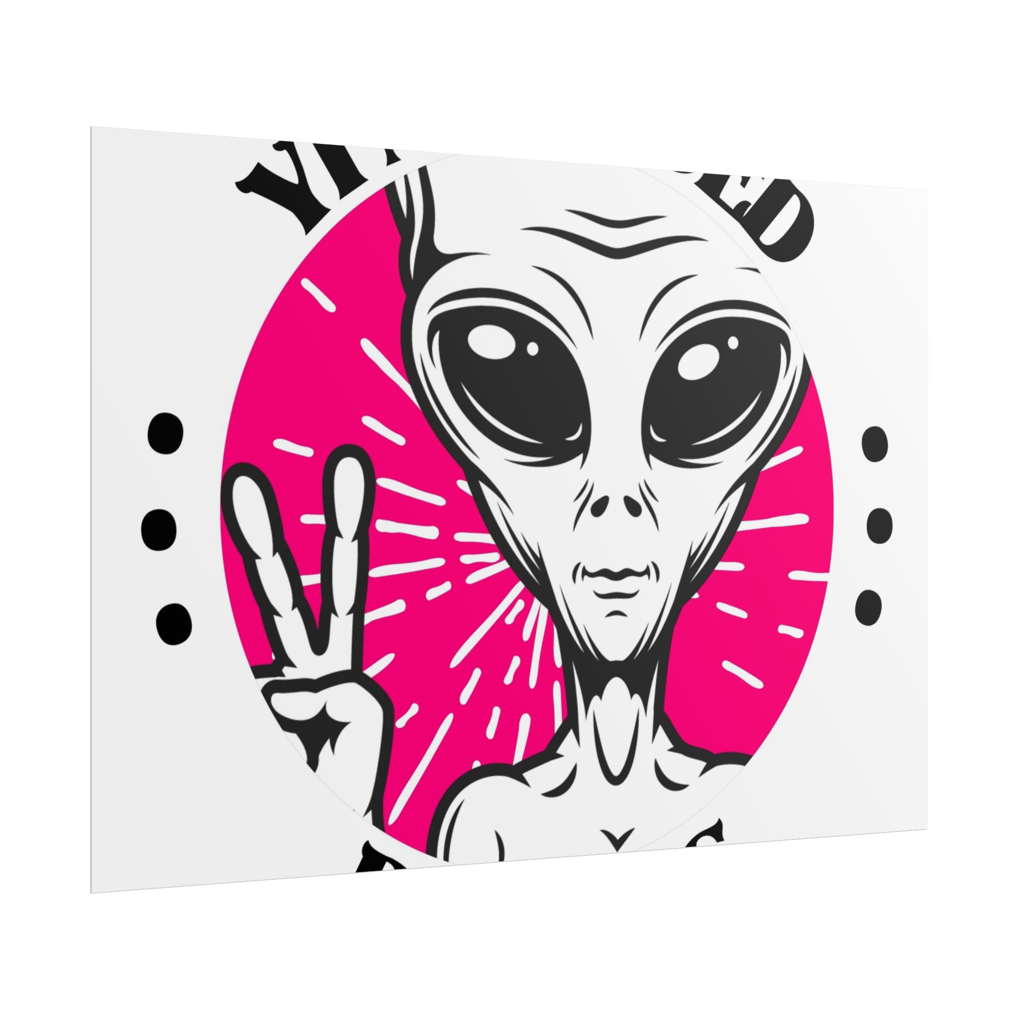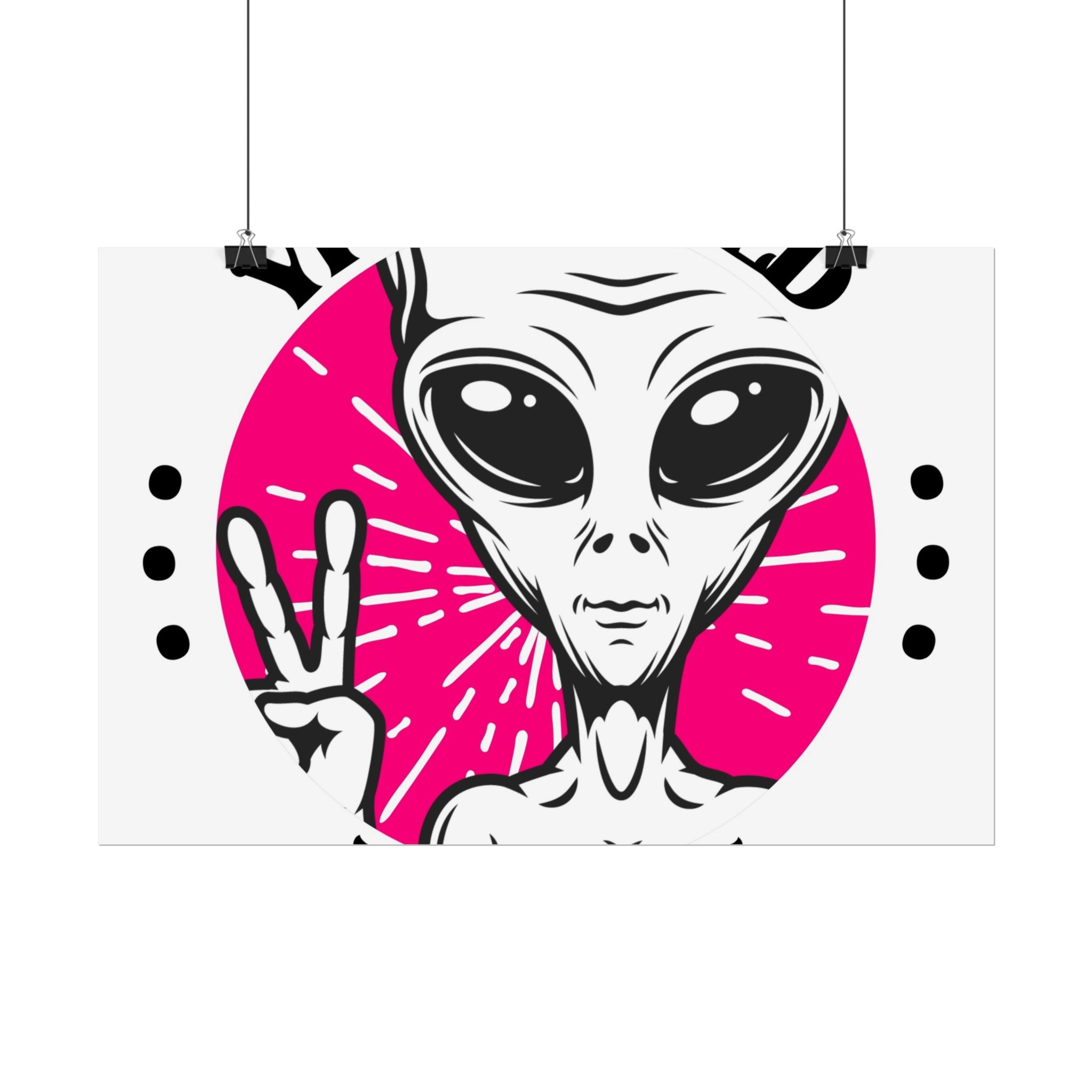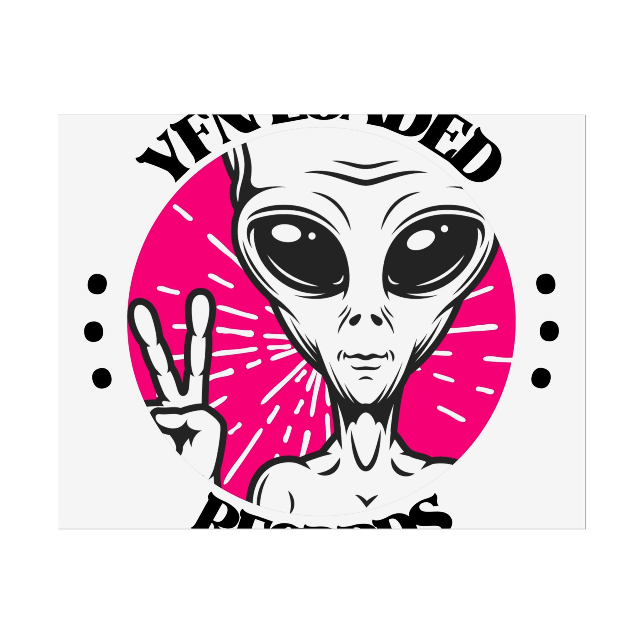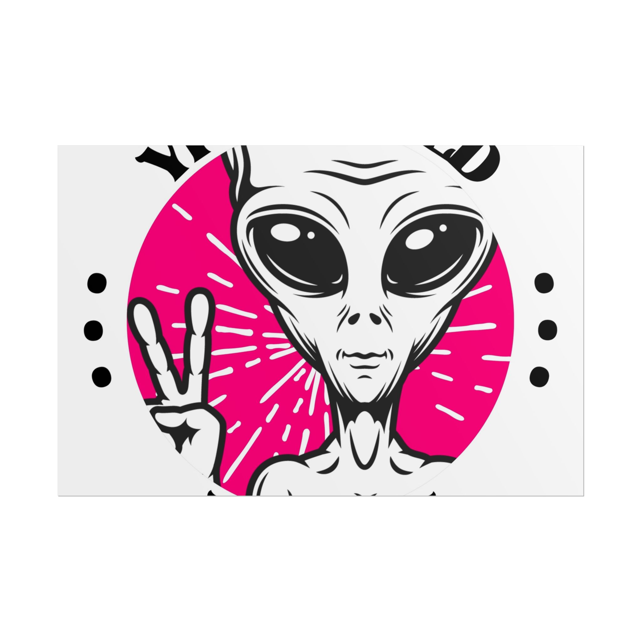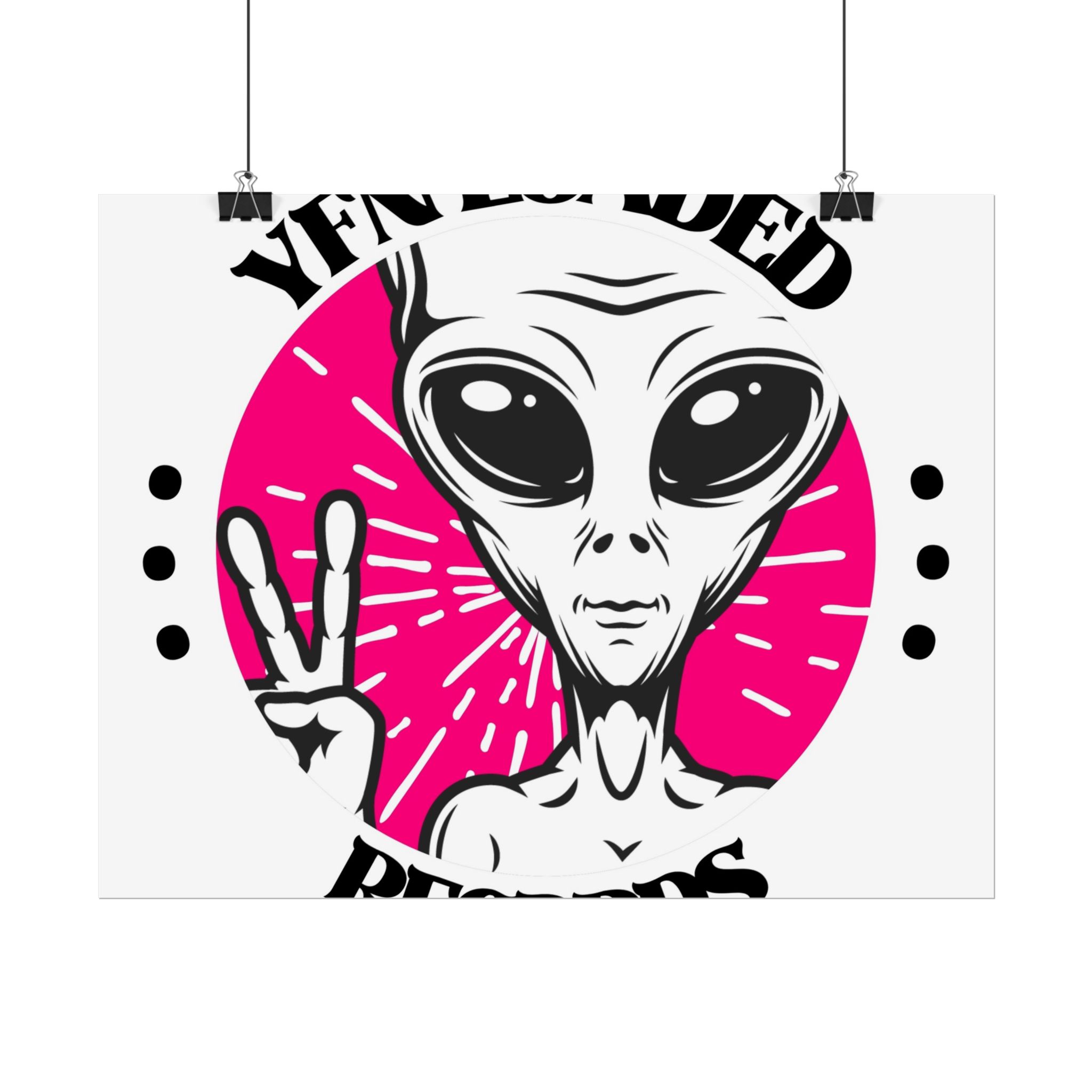 A bold rolled poster that brings playful extraterrestrial energy to any wall. Printed with archival giclée quality, this design features a stylized alien flashing a peace sign against a vivid magenta halo and retro type that reads “VFN LOADED RECORDS.” The textured fine art option adds depth and a handcrafted feel; semi-gloss delivers punchy, sharp color; matte offers a softer, museum-like finish. Rolled for safe shipping, these posters arrive ready to frame or pin up for instant personality in studios, dorm rooms, or listening corners.
