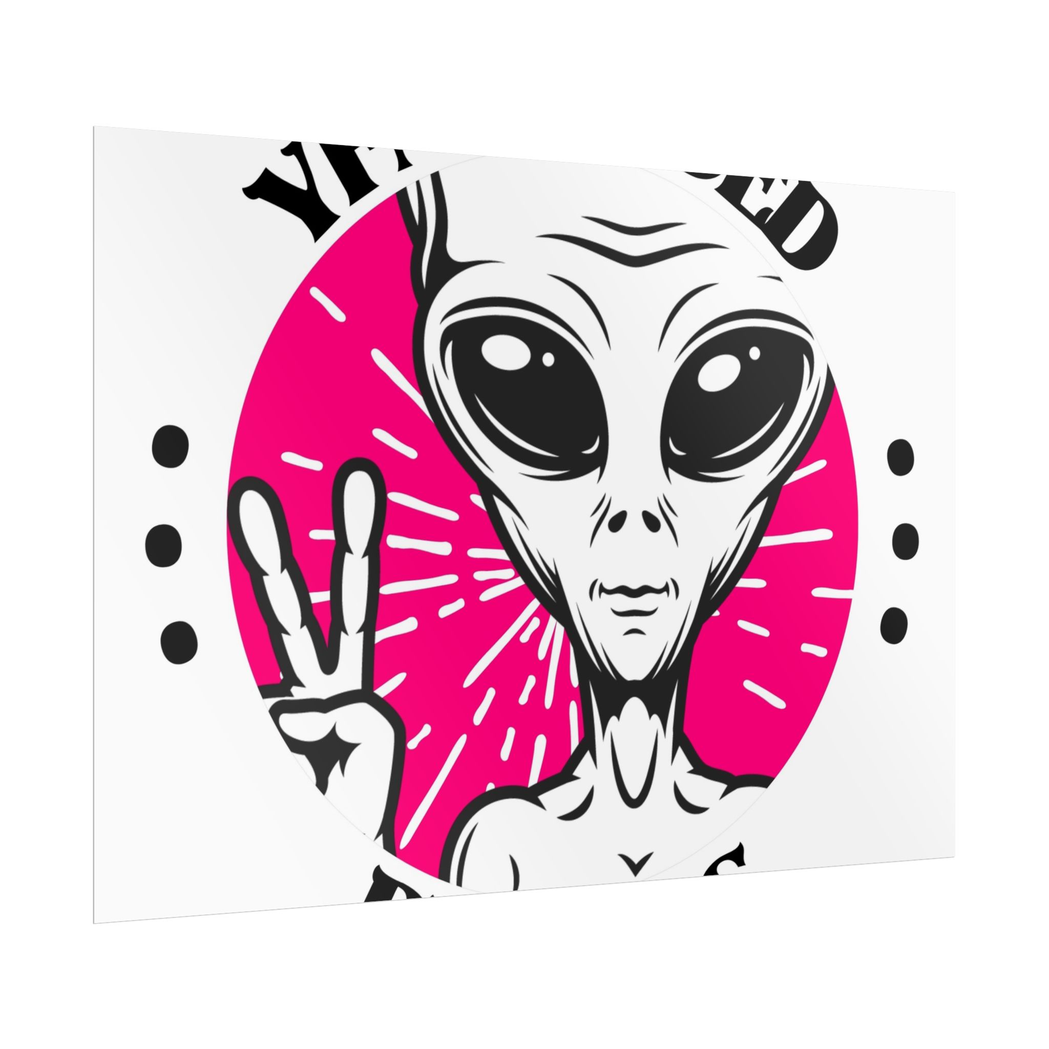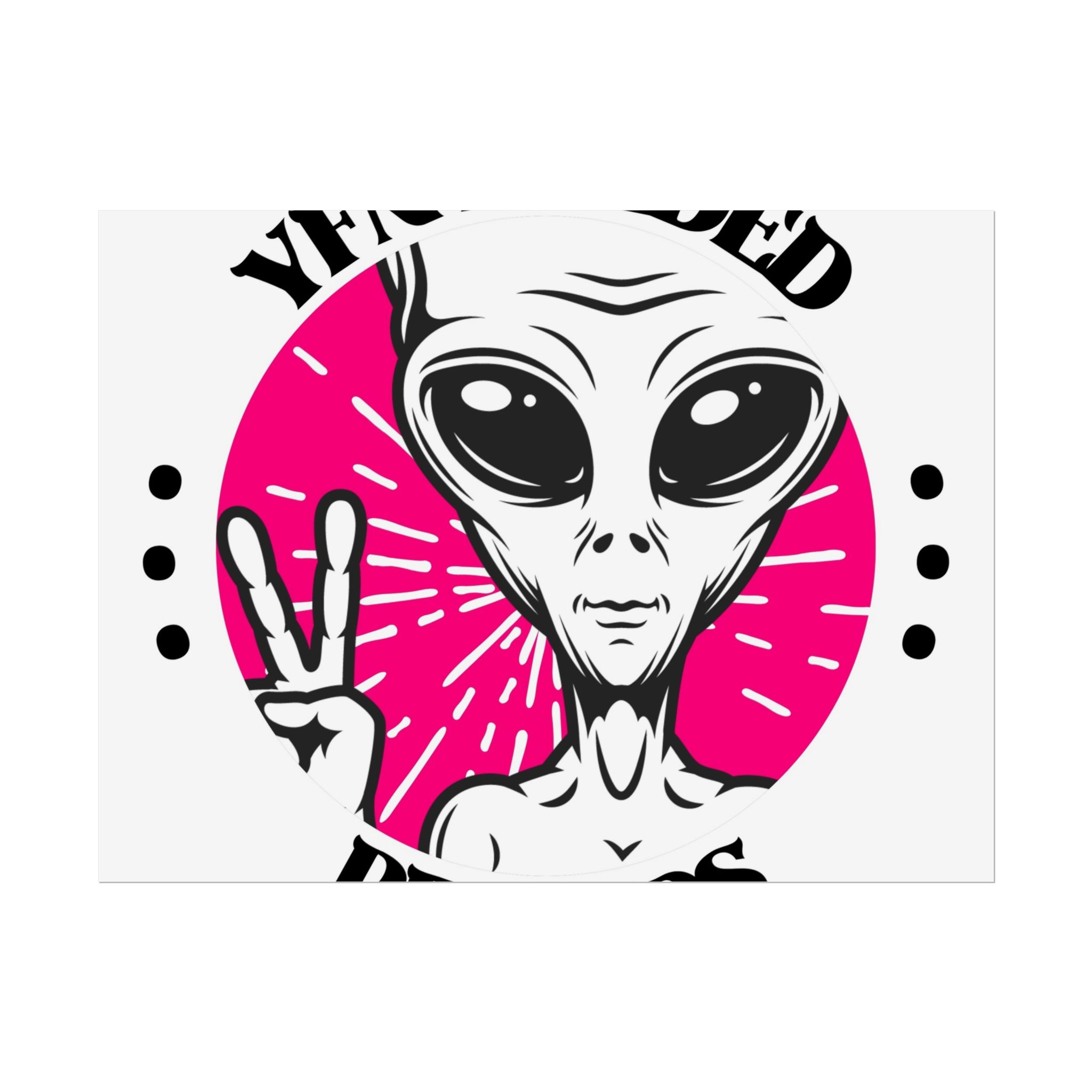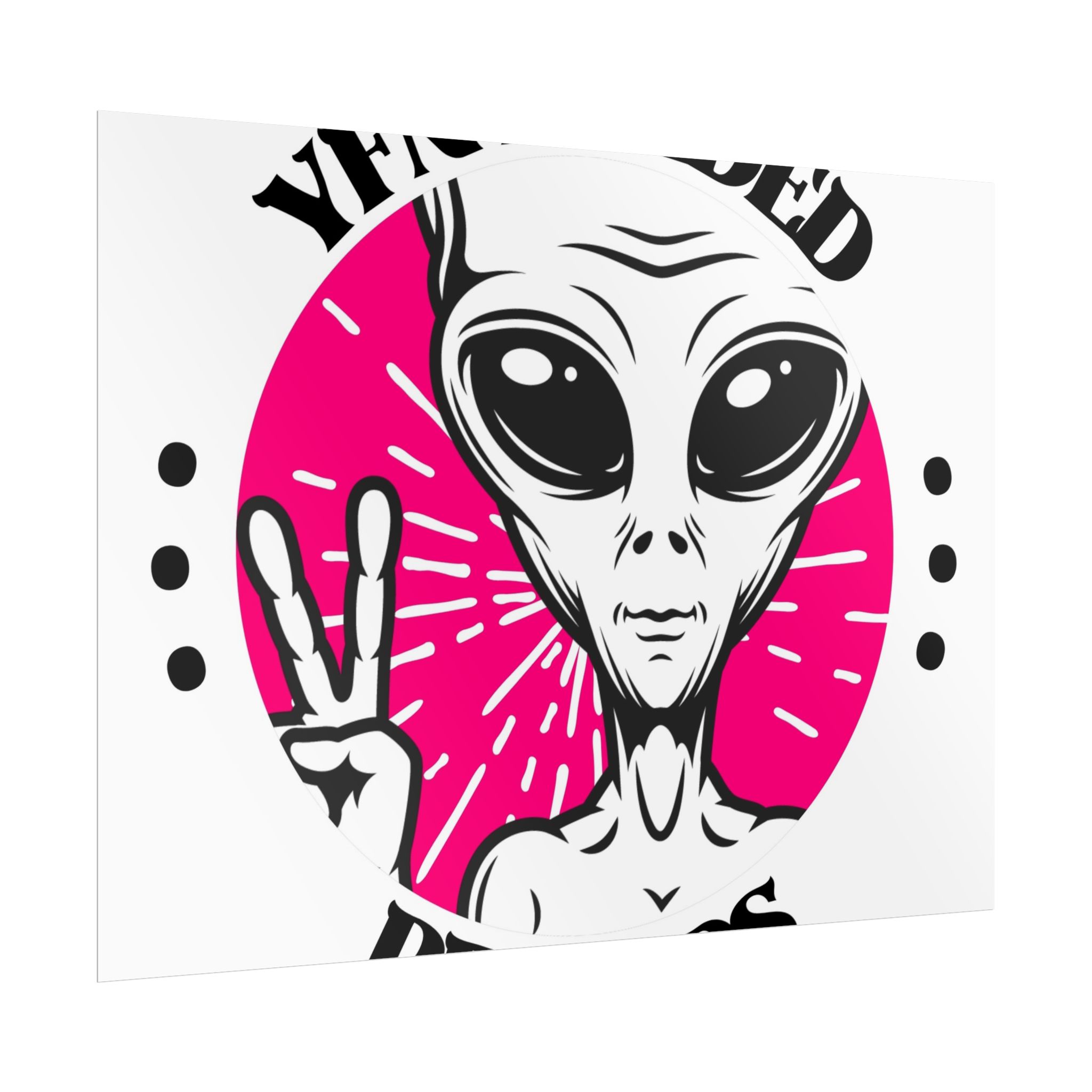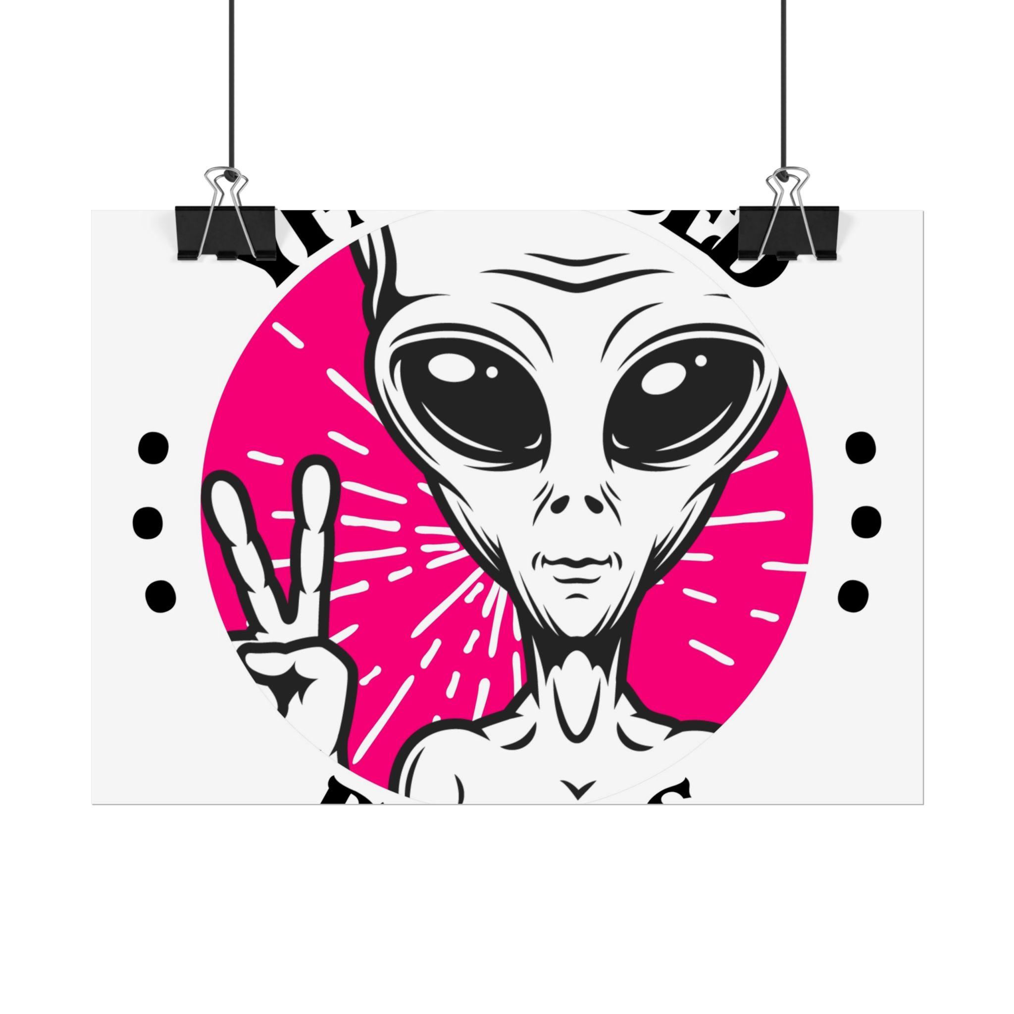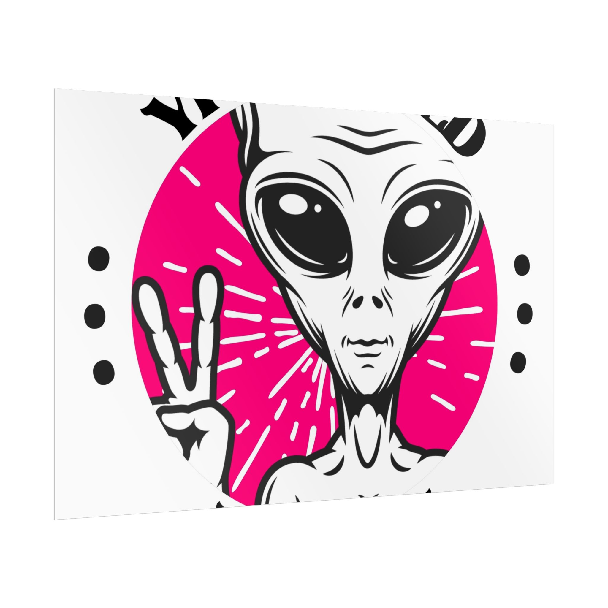 A bold rolled poster that brings playful extraterrestrial energy to any wall. Printed with archival giclée quality, this design features a stylized alien flashing a peace sign against a vivid magenta halo and retro type that reads “VFN LOADED RECORDS.” The textured fine art option adds depth and a handcrafted feel; semi-gloss delivers punchy, sharp color; matte offers a softer, museum-like finish. Rolled for safe shipping, these posters arrive ready to frame or pin up for instant personality in studios, dorm rooms, or listening corners.
