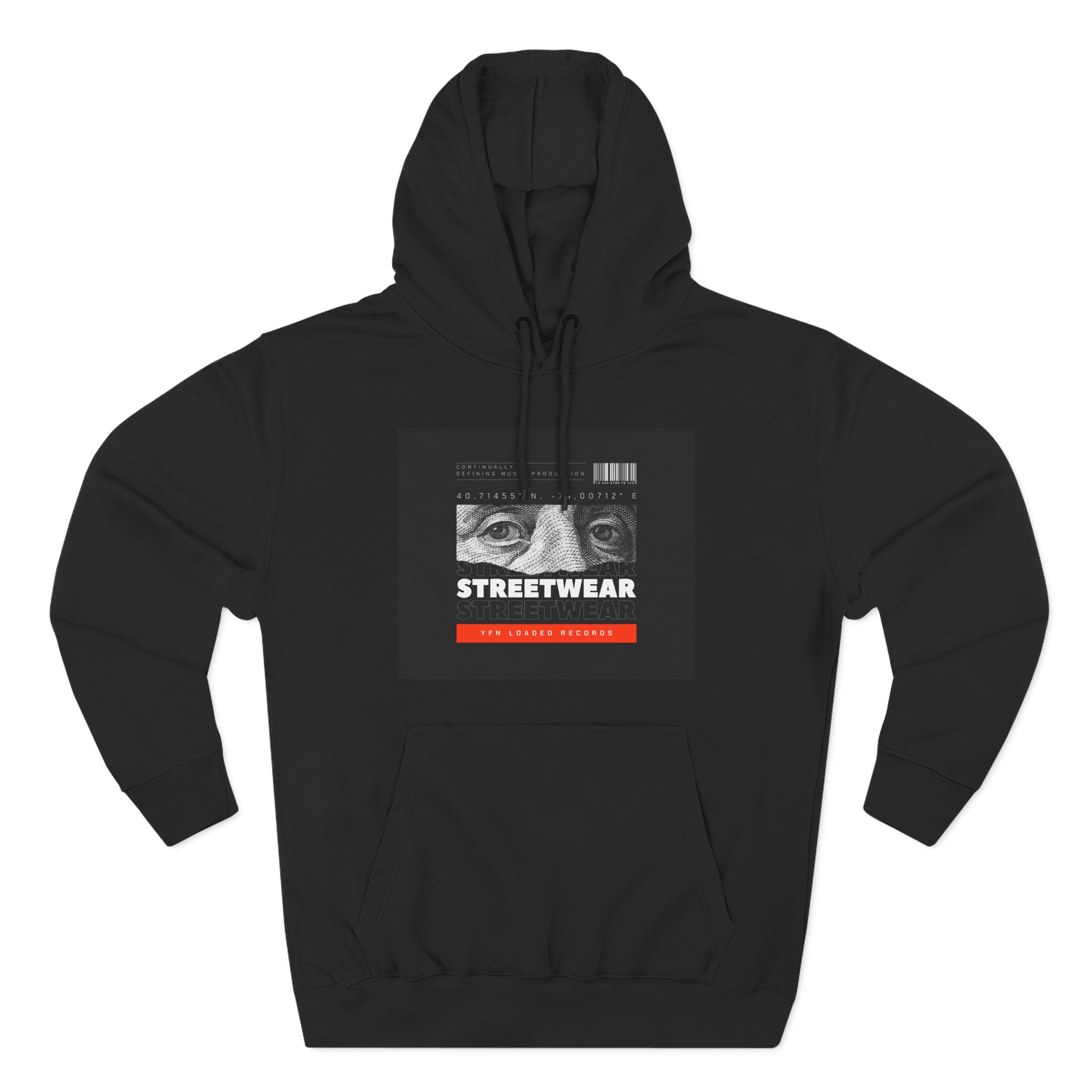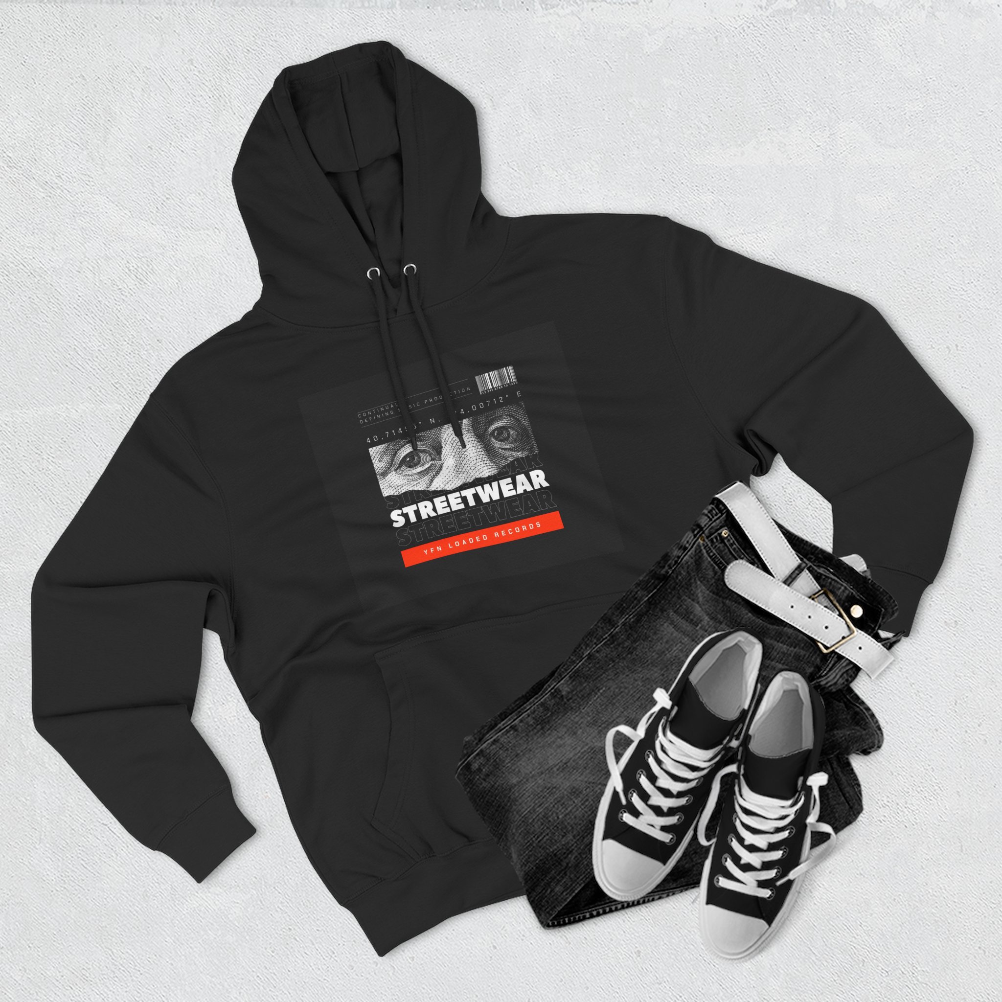 This midweight hoodie blends streetwise attitude with quiet comfort. The three-panel hood frames the face for an urban silhouette while the roomy kangaroo pocket keeps hands warm on late-night walks or commuter runs. The front graphic — a high-contrast, cinematic eye motif with bold “STREETWEAR” lettering and a splash of red — reads like a poster from an independent film festival, bringing a moody, artful edge to everyday layering. Built from a soft combed cotton and recycled-poly fleece, it wears broken-in from the first day but holds shape thanks to twill neck tape and reinforced topstitching. Subtle details — metal-grommet drawcords, tear-away label, and the option for small chest embroidery — make it feel considered and built to last. Reach for this hoodie when you want something that reads crafted, comfortable, and quietly rebellious.